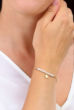 Bracciale in acciaio ip gold e perle BK2188